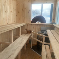 Sauna koster 600 kr. for 2 timer (maks 12 personer) og skal bestilles 2 timer før.